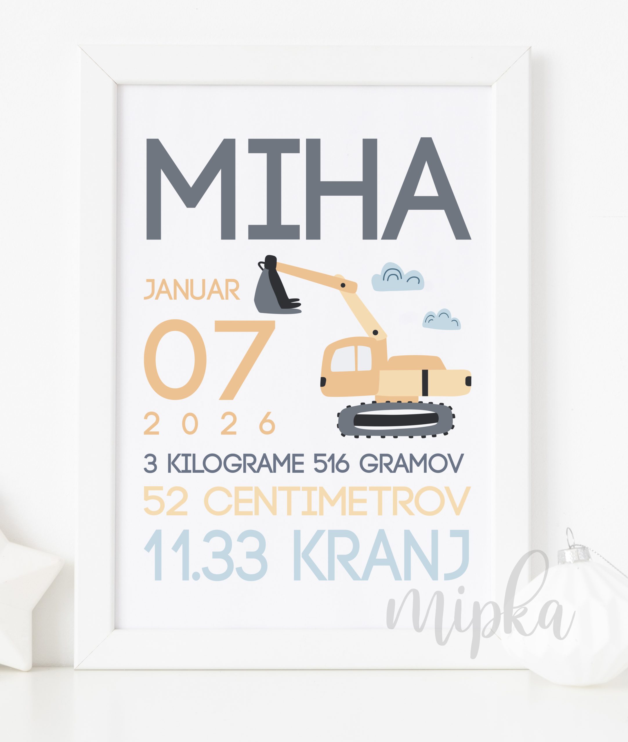 Ob naročilu vnesite podatke otroka, izberite dimenzijo in ali želite še okvir.